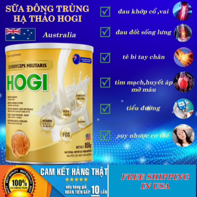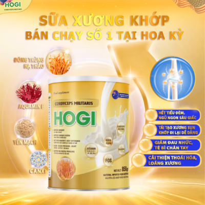 Sữa non hogi thành phần chứa đông trùng hạ thảo và nguyên liệu nhập khẩu Úc giúp hỗ trợ điều trị bệnh xương khớp, huyết áp, mỡ máu và tiểu đường hiệu quả